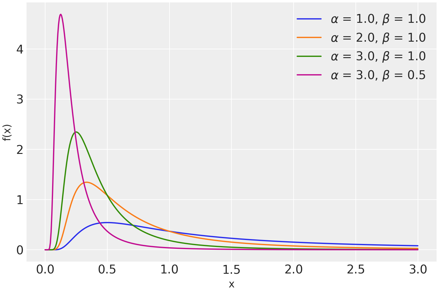 \[f(x \mid \alpha, \beta) = \frac{\beta^{\alpha}}{\Gamma(\alpha)} x^{-\alpha - 1} \exp\left(\frac{-\beta}{x}\right)\]
