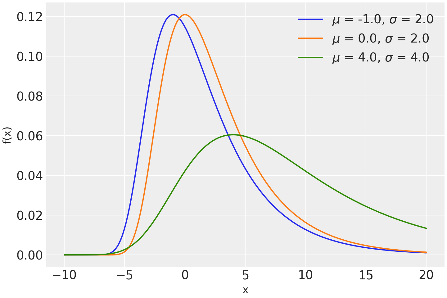 \[f(x \mid \mu,\sigma) = \frac{1}{\sqrt{2\pi}\sigma}e^{-\frac{1}{2}\left(z + e^{-z}\right)},\]